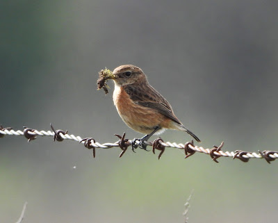 Meadow Pipit above, and below, a male Stonechat.